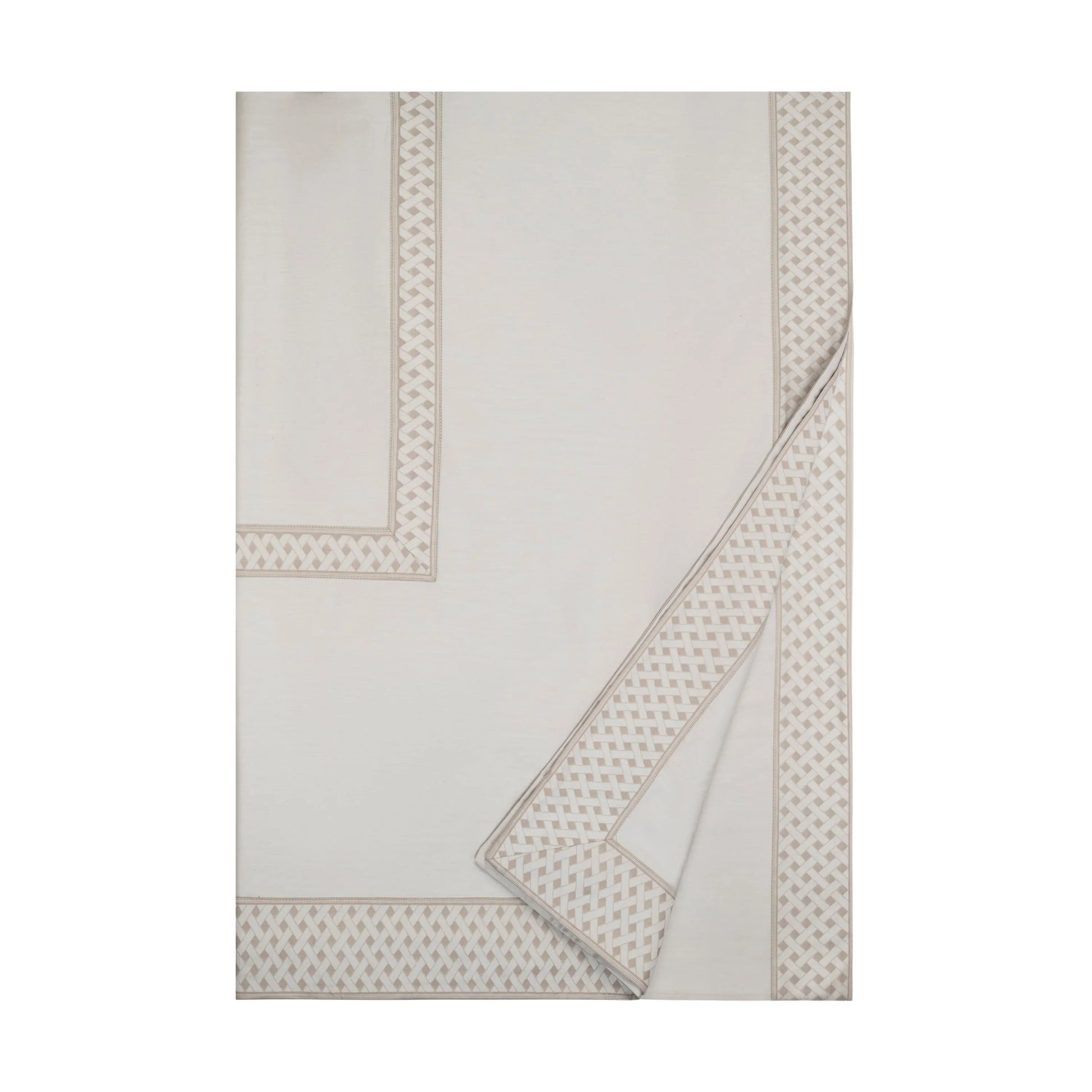 Les housses de couette Ara sont conçues avec un corps en satin solide, une large bordure sur le bord et une bordure étroite encadrant le matelas ; elles présentent une finition en couteau, quatre attaches d'angle et une fermeture à boutons.