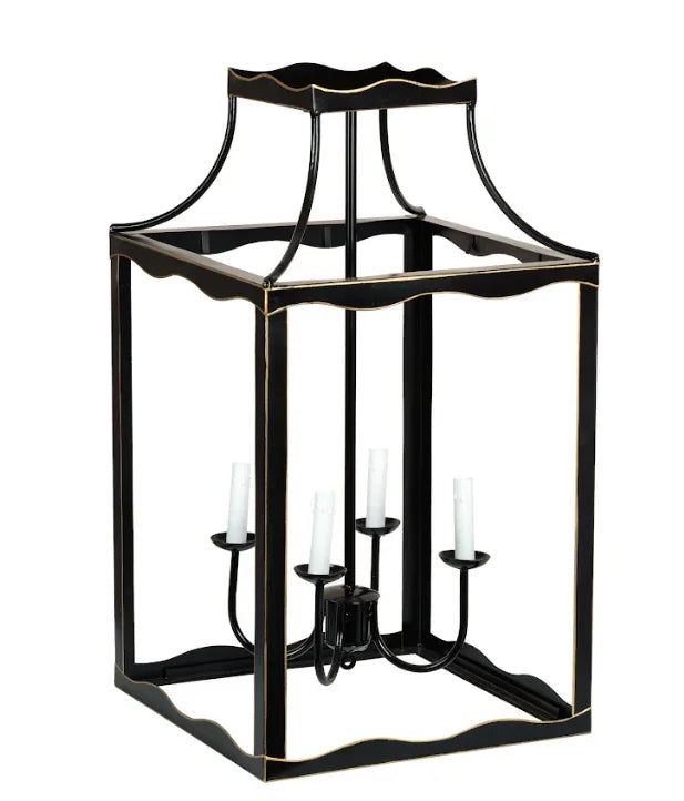 Découvrez notre élégante lanterne noire et dorée, un incontournable pour tout espace luxueux. Sa bordure dorée peinte à la main ajoute une touche d'opulence. Elle est fournie avec une chaîne et un cache-piton pour une suspension facile. Électrifiée pour plus de commodité, elle complètera parfaitement votre décoration intérieure.