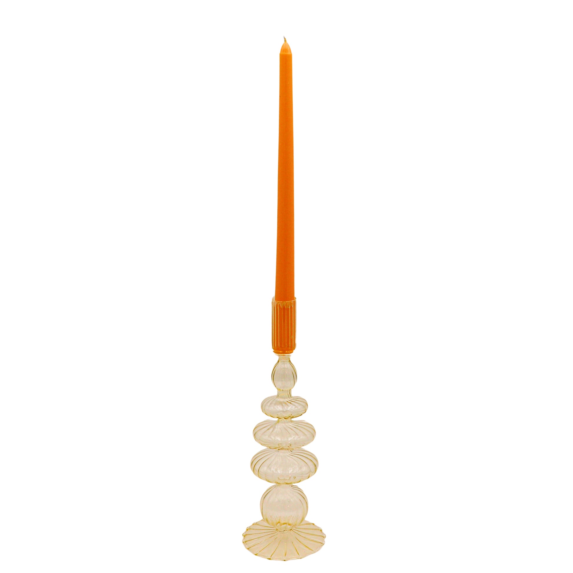 Bougeoir en verre côtelé jaune crème au beurre (lot de 2)