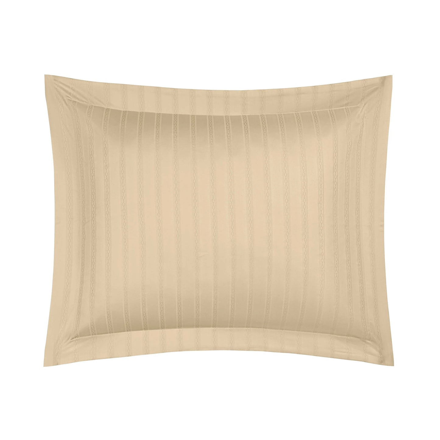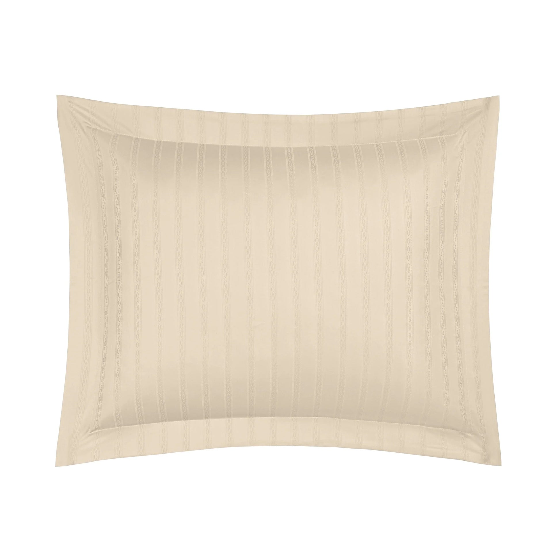 Les housses de couette Christiane sont fabriquées en jacquard italien 100 % coton égyptien, 300 fils au pouce carré, avec des attaches d'angle intérieures, une finition en bord de couteau et une fermeture à bouton.