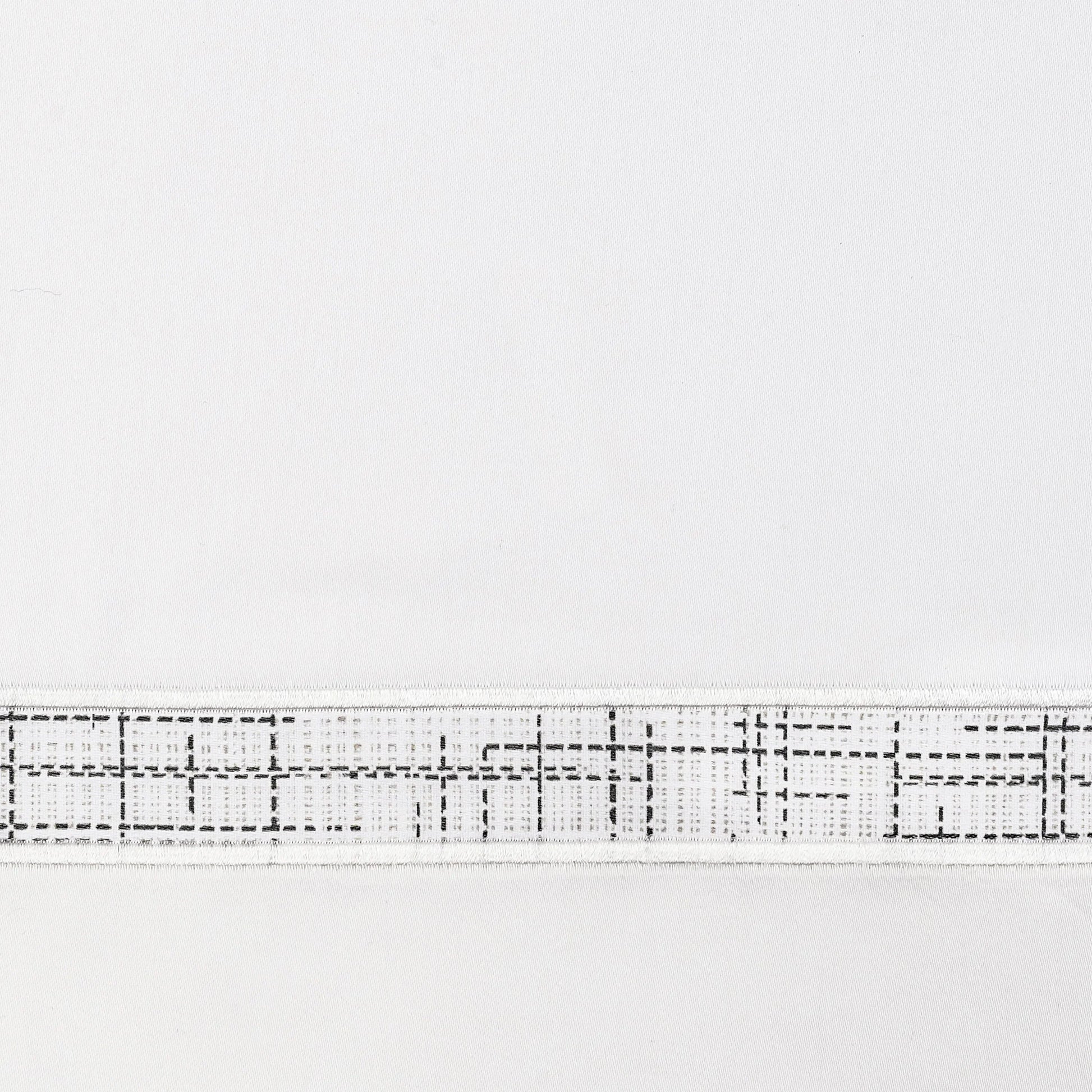 Les taies d'oreiller Daphne sont conçues avec notre satin royal de 300 fils, en blanc naturel, avec un insert en tissage Daphne de 1,5', bordé de points de satin.