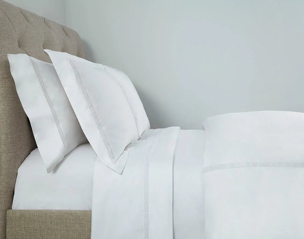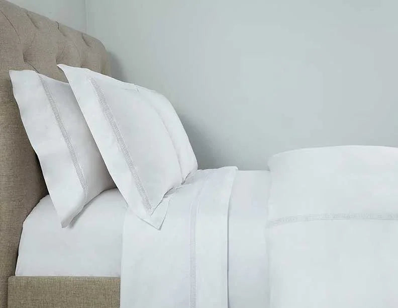 Les draps-housses Doric sont fabriqués avec un corps en percale solide et une poche de 17'.