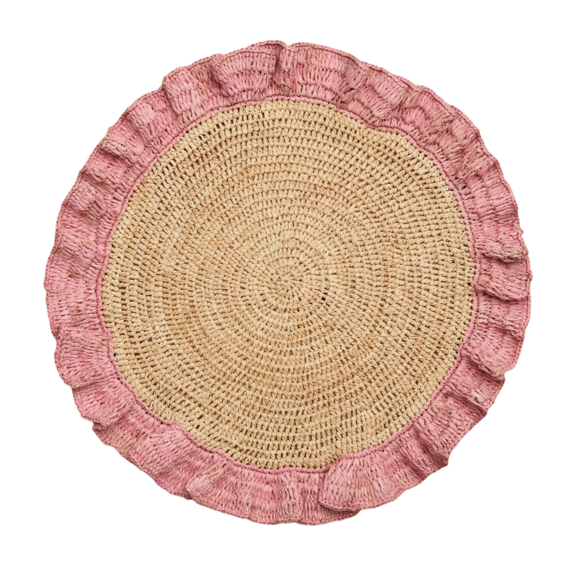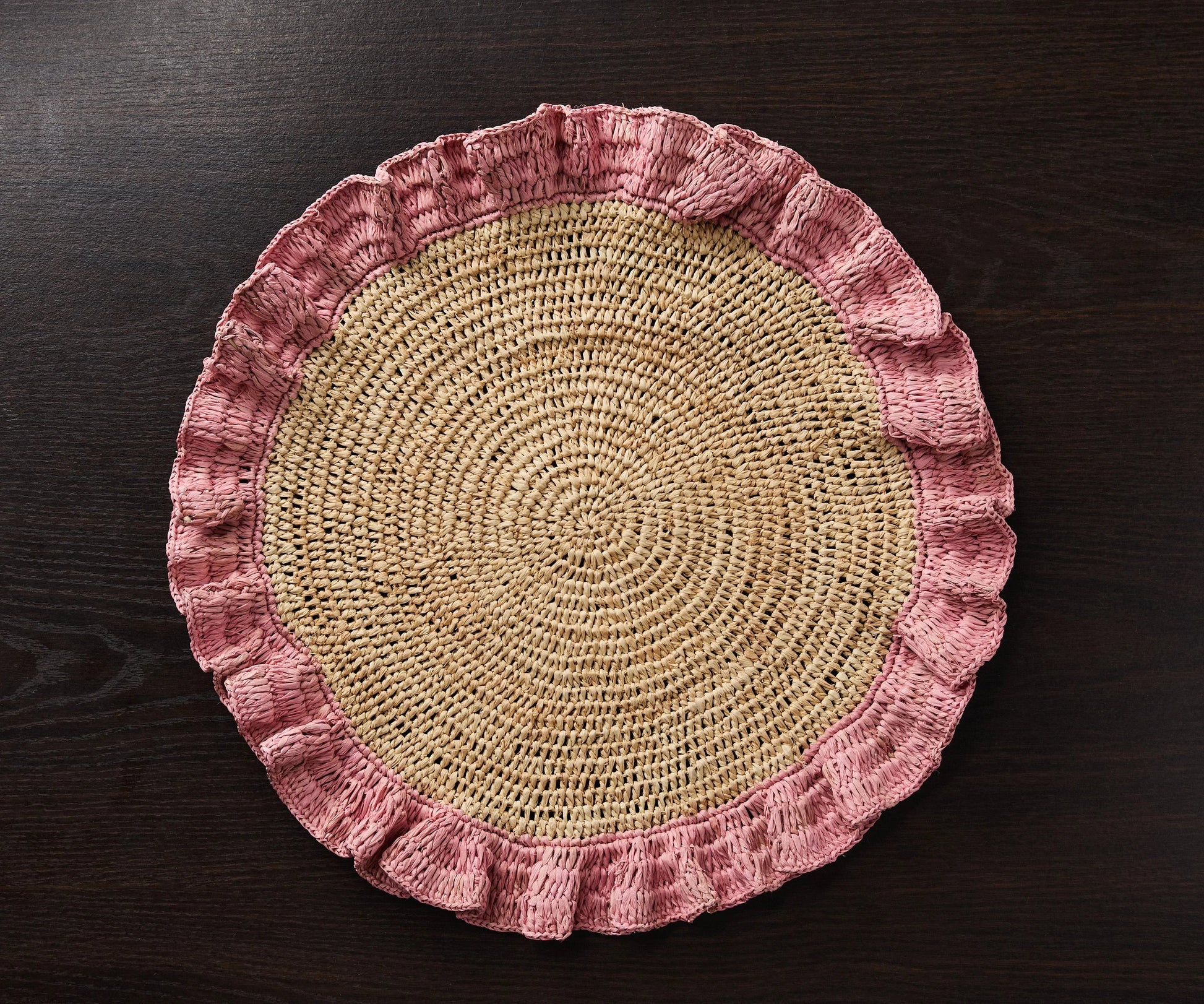 - Set de table à volants en raphia tissé à la main, parfait pour une décoration bohème et côtière