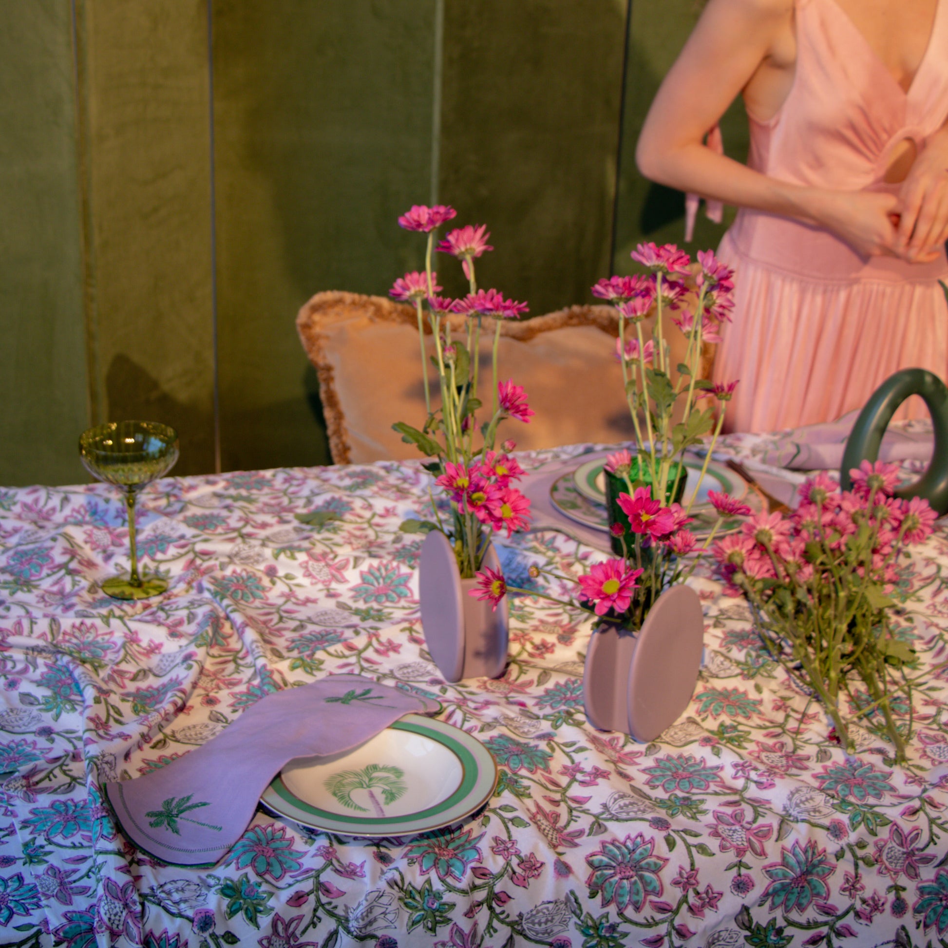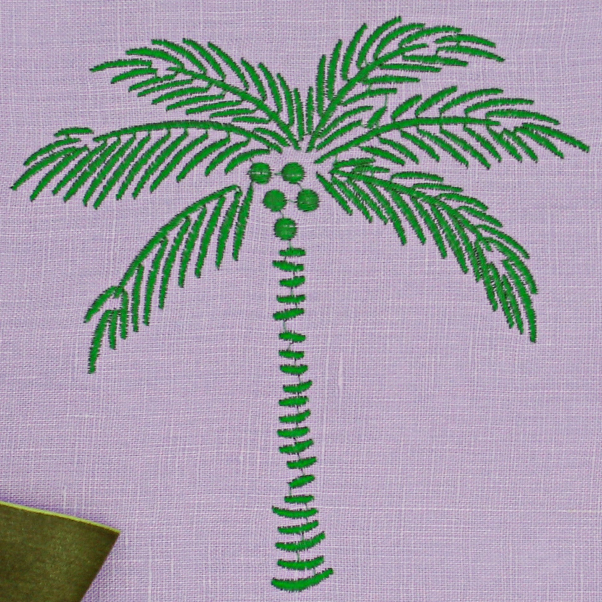 Laissez-vous séduire par l'opulence d'une époque révolue avec notre serviette Mirage Jewelled. Confectionnée avec soin en lin lilas, elle est ornée d'une bordure brodée vert émeraude et de motifs de palmiers de chaque côté. Associez-la à notre vaisselle coordonnée pour créer un décor captivant qui vous transportera dans une époque révolue, au charme intemporel et au charme envoûtant de notre collection Palmier Vintage.