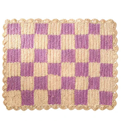 Set de table à carreaux lavande, plateau rectangulaire en raphia