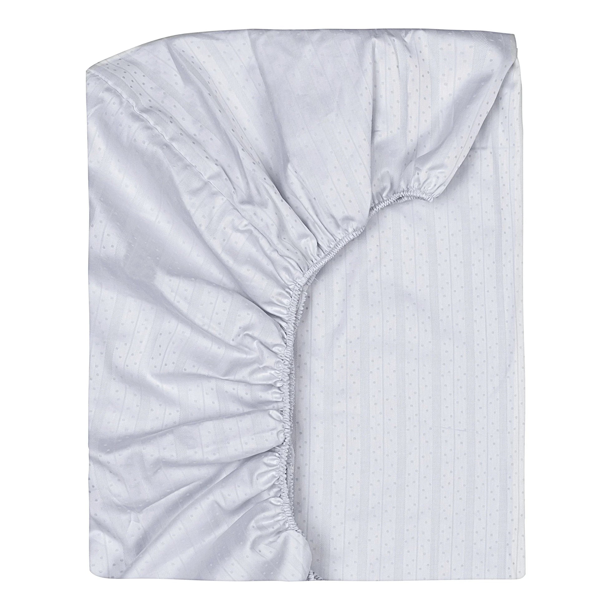 Les draps-housses pour berceau Laylee sont fabriqués en jacquard italien 100 % coton égyptien 300 fils au pouce carré, avec un motif à rayures et à pois, et sont dotés d'une poche de 2,4 m. (Remarque : les draps-housses sont vendus par lot de 2.)