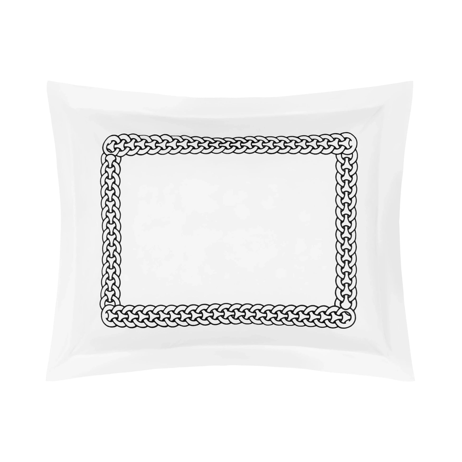 Les taies d'oreiller Links sont conçues avec un corps en percale blanche unie et une broderie inspirée d'une chaîne.