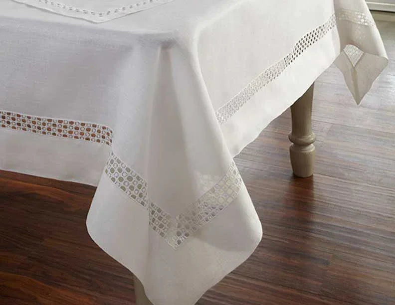 Les sets de table en lin Lotus sont ornés d'une broderie à main ouverte. (Remarque : les sets de table sont vendus par lot de 6)