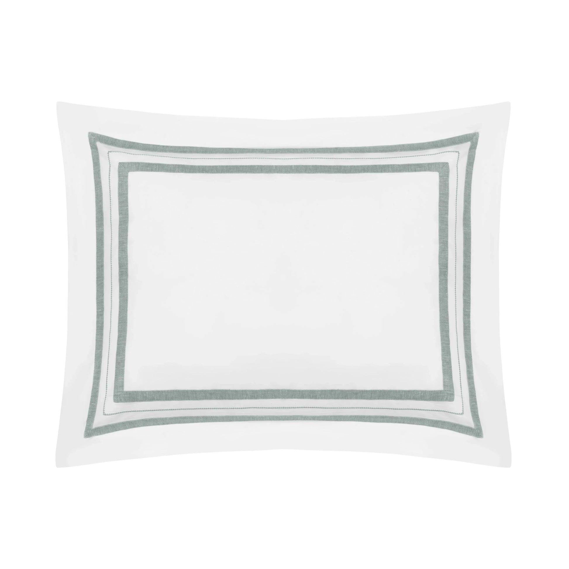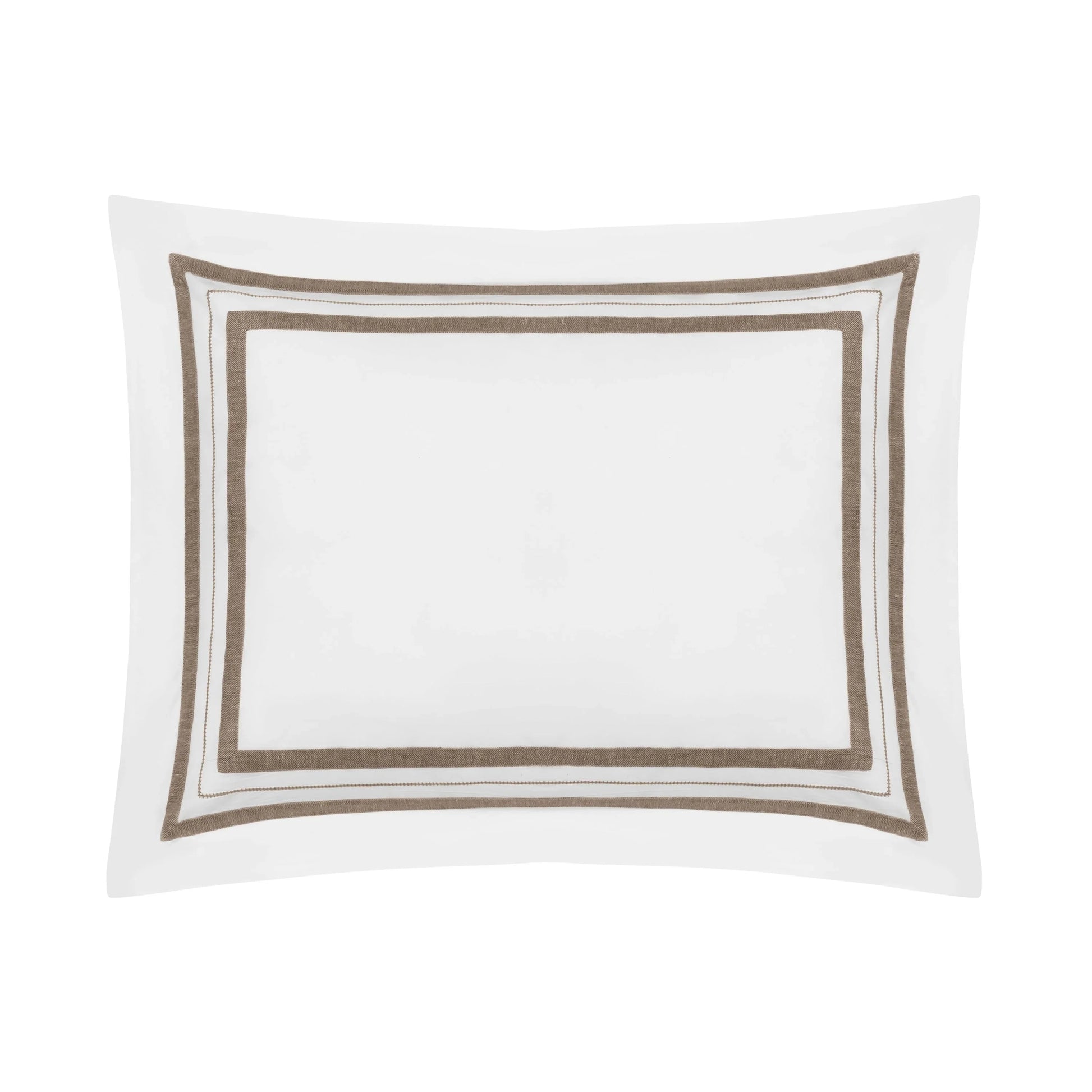 Les taies d'oreiller Malibu sont conçues avec deux rubans de lin appliqués coupés à la main et un point d'ourlet ton sur ton entre les deux, le long de l'ourlet de la bride.