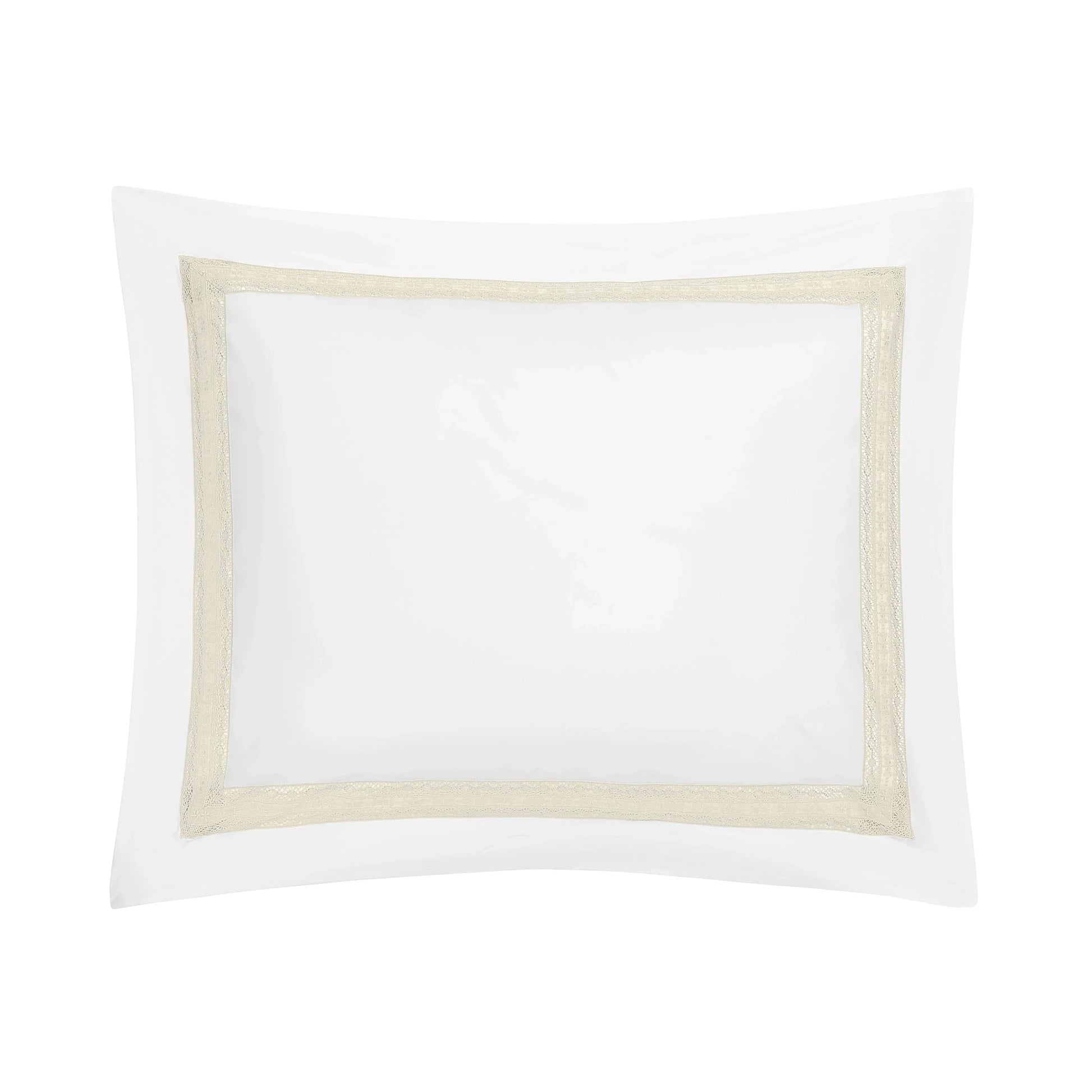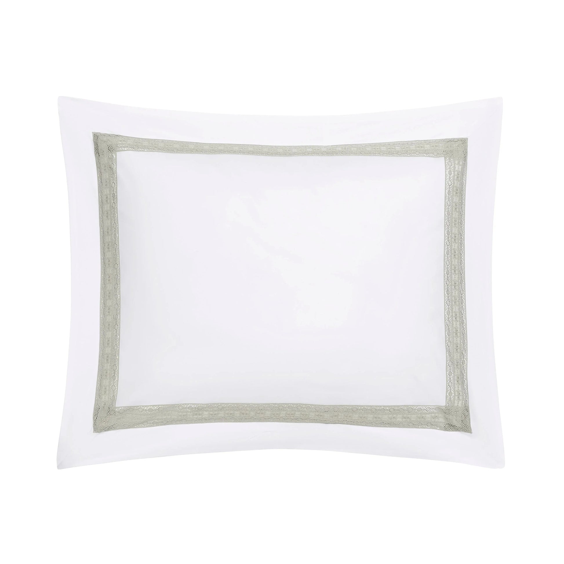 Les taies d'oreiller Pamela présentent un corps en percale solide, avec de la dentelle française appliquée sur l'ourlet de la bride.