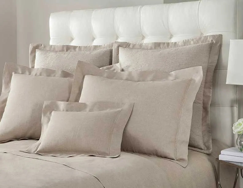 Les taies d'oreiller Provenza sont finies avec un ourlet ton sur ton guidé à la main le long de l'ourlet du poignet.