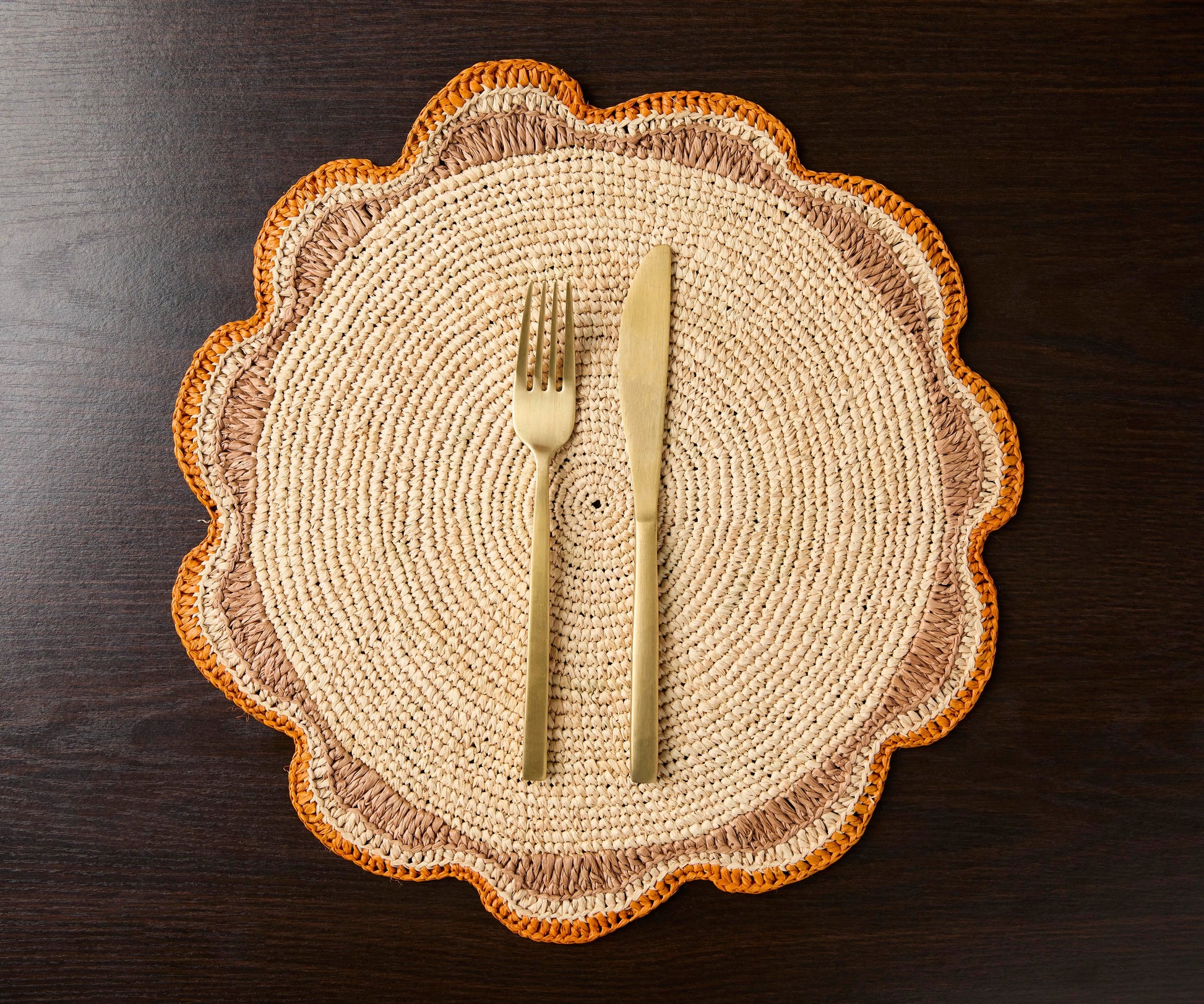 Set de table rond en raphia tressé – Set de table fait main au crochet pour décoration de fête de jardin, accessoire de table rustique en fibre naturelle