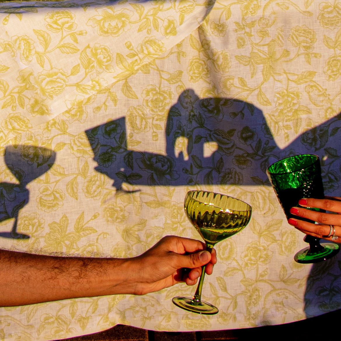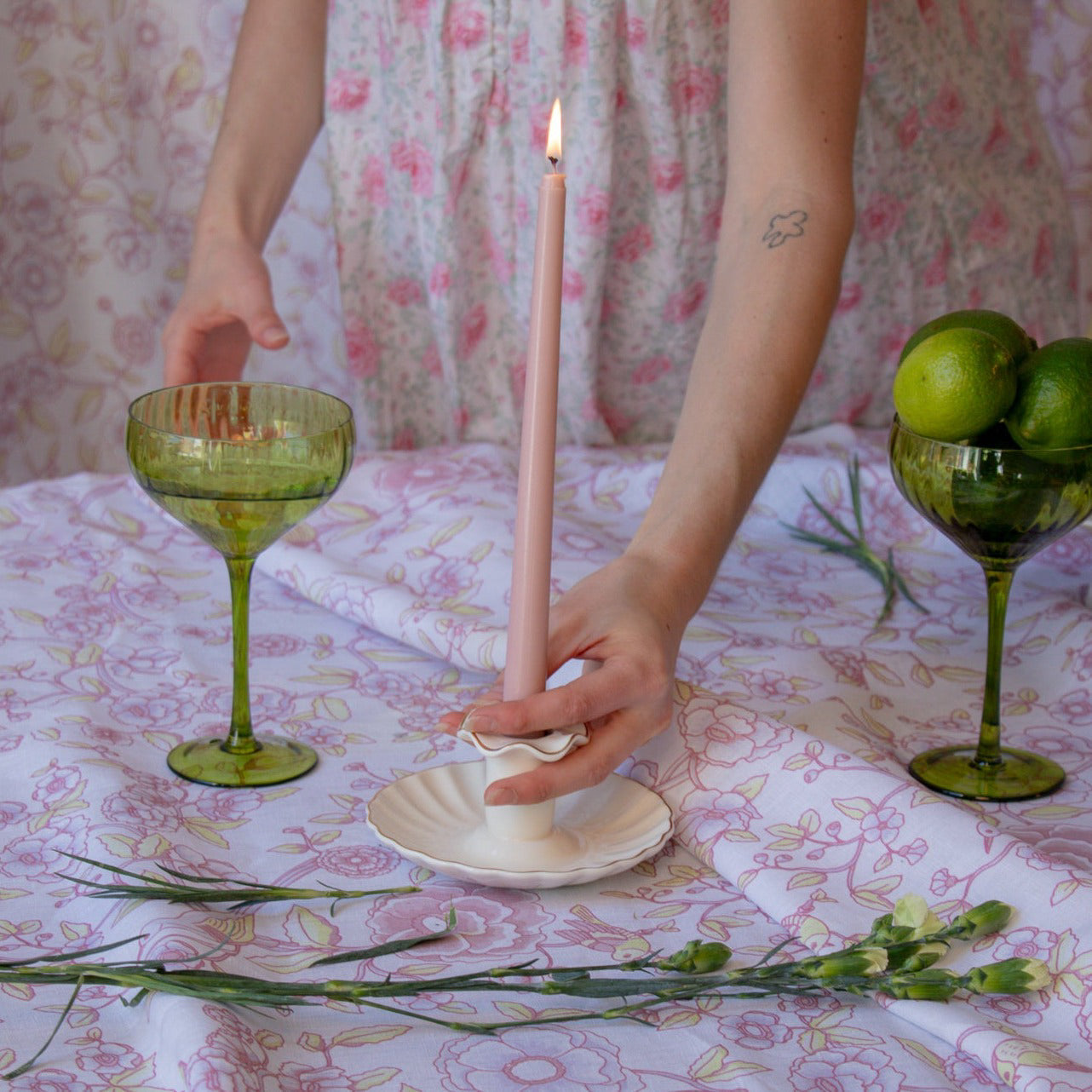 Soufflé à la main en verre texturé, il présente un design extérieur nervuré et une tige distinctive. Sa teinte verte discrète évoque une époque révolue.