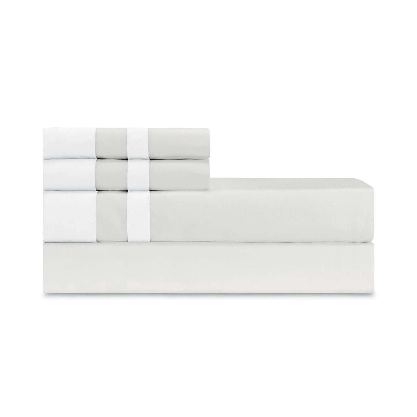 Les draps plats Savoy sont conçus avec un corps en satin solide, doté d'un revers appliqué de 2,5' et d'un insert de 1'.
