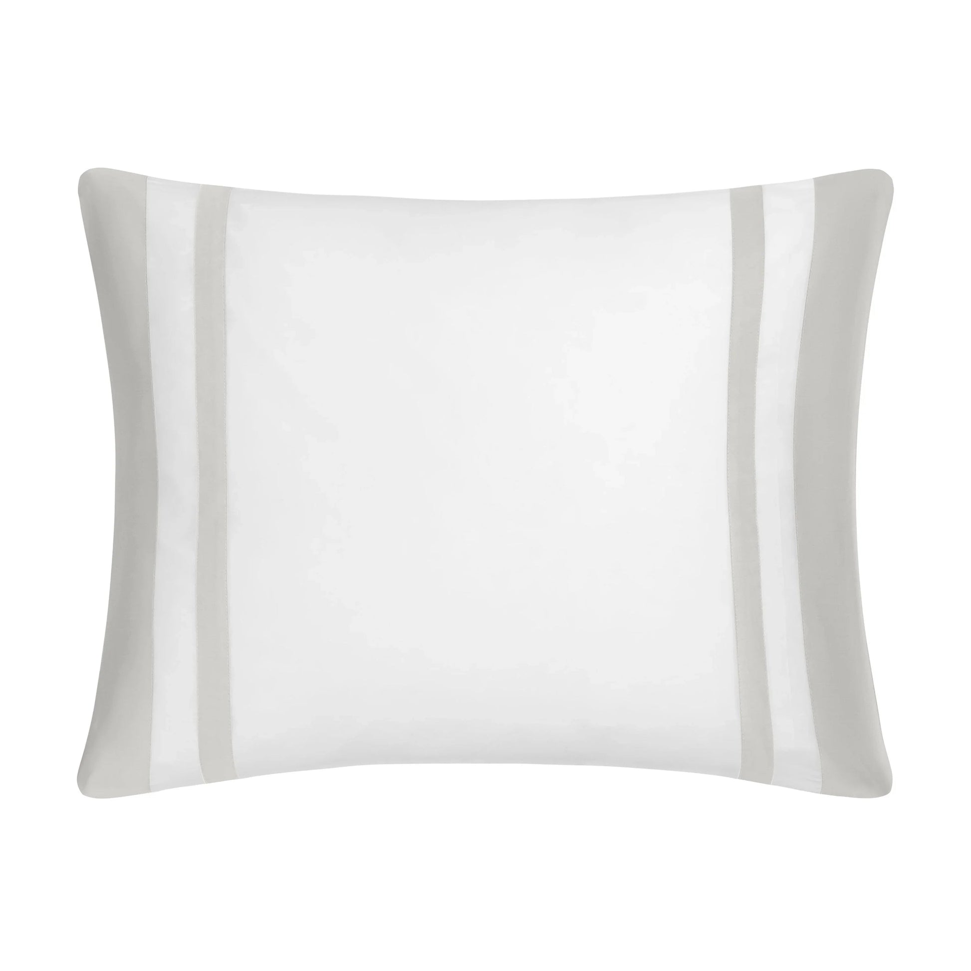 Les taies d'oreiller Savoy sont conçues avec un corps en satin massif, avec des bordures appliquées verticales de 2,5' et des inserts de 1', avec une finition en bord de couteau.