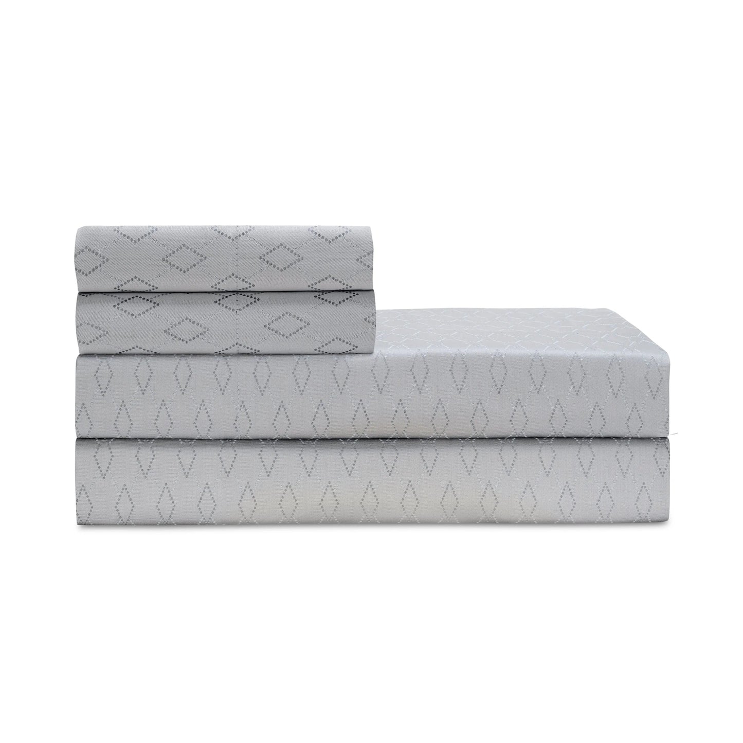 Les ensembles de draps Scotland comprennent un drap plat, un drap-housse et deux taies d'oreiller. (Remarques : les draps plats et les taies d'oreiller sont dotés d'un ourlet uni ; le drap-housse a une poche de 4,3 m. L'ensemble King comprend des taies King ; les ensembles Twin/Queen comprennent des taies Standard.)