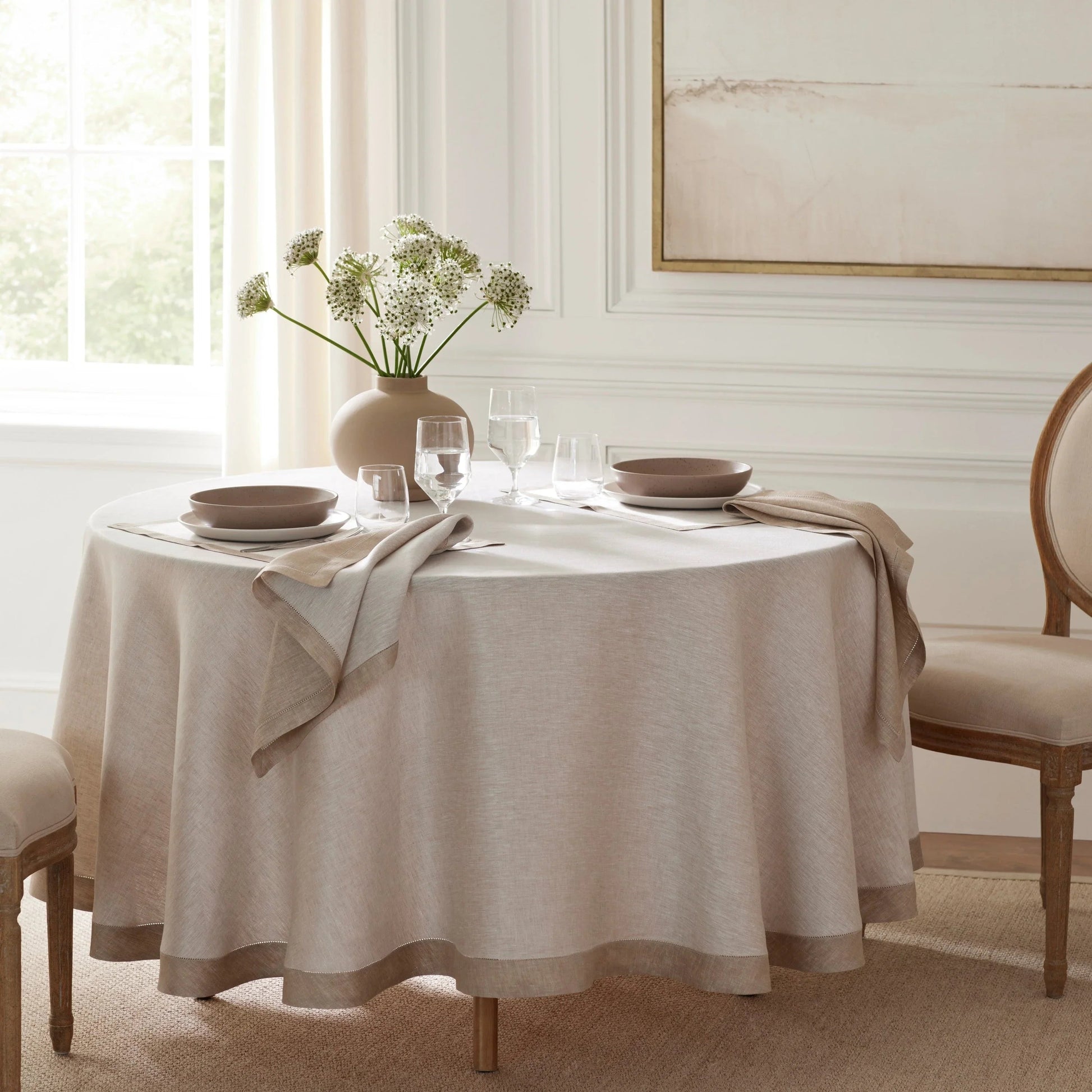 Les sets de table en satin de lin Seychelles présentent un ourlet inversé et une finition à ourlet ton sur ton. (Remarque : les sets de table sont vendus par lot de 6).
