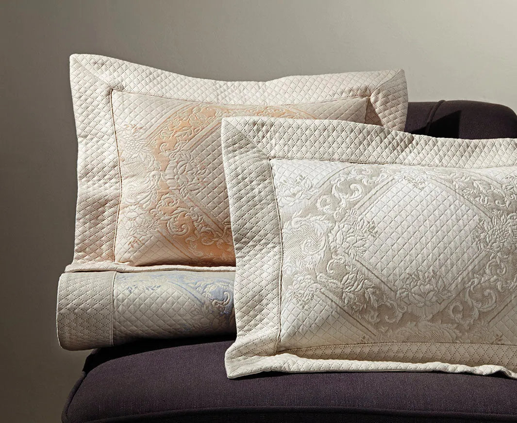 Nos taies d'oreiller Shiraz sont dotées d'une bride en diamant coordonnée et soutenues par une fermeture d'enveloppe en satin ton sur ton.