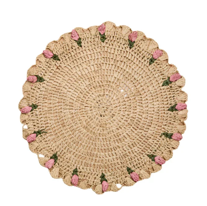 Ajoutez une touche d'élégance artisanale à votre table avec ces magnifiques sets de table floraux. Chaque pièce est soigneusement crochetée à la main à partir de raphia naturel par de talentueuses artisanes malgaches, alliant savoir-faire artisanal et matériaux durables. Parfaits pour les tables printanières, ces sets de table apporteront chaleur et charme à toutes vos réceptions.
