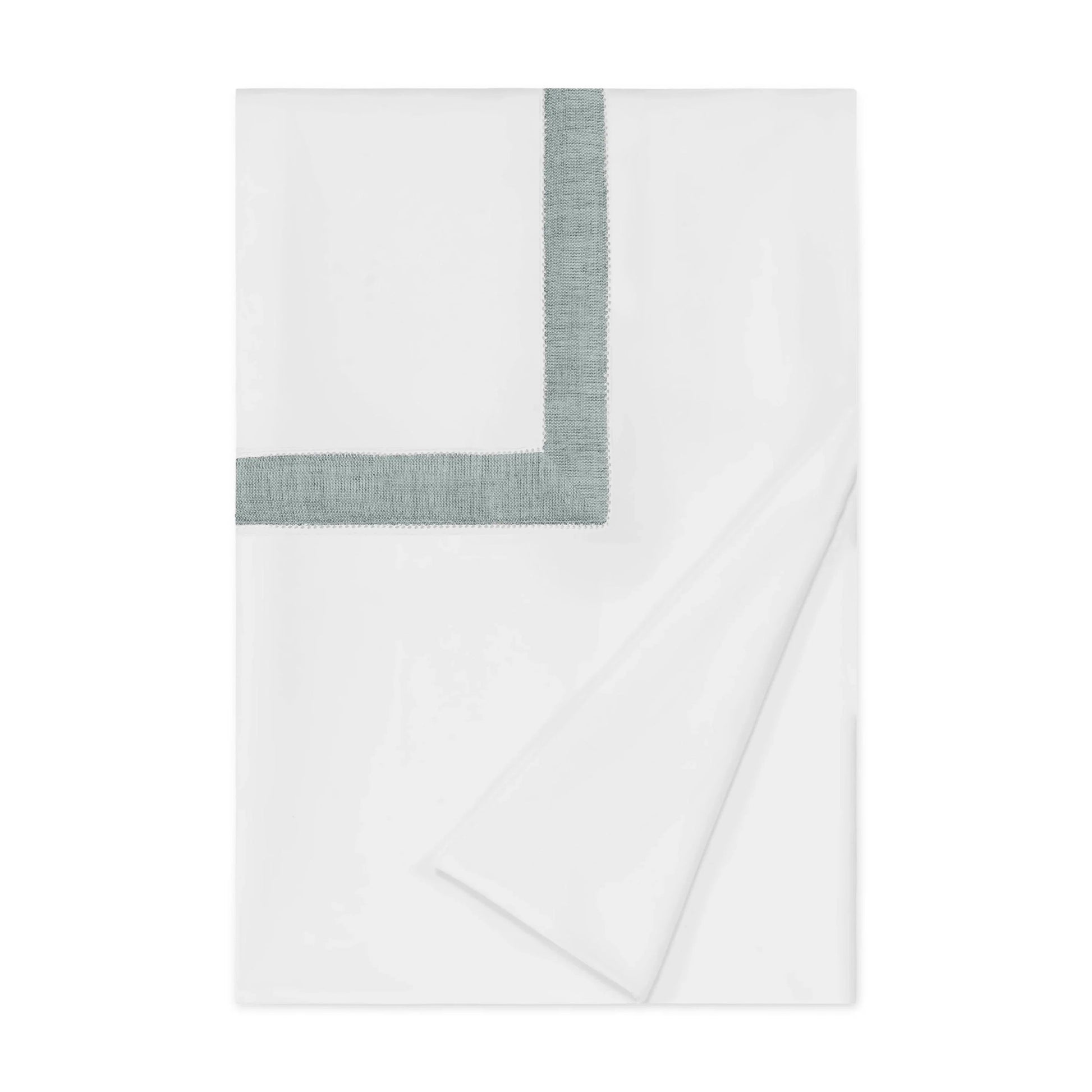 Les housses de couette Yves sont conçues avec un corps en percale blanc Darcy de 600 fils, avec un insert en lin appliqué de 1' bordé d'un ourlet en forme de « U » encadrant le matelas ; les housses de couette sont finies avec un bord de couteau, quatre attaches d'angle et une fermeture à bouton.